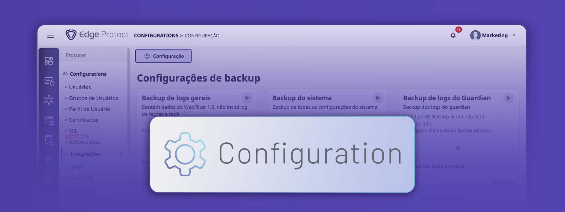O módulo Configurations é o núcleo das configurações do Edge Protect, nossa solução NGFW. Ele foi desenvolvido para atuar de maneira fluida, integrando várias funcionalidades cruciais para a administração do sistema e abrange diversos aspectos que suportam outros módulos, como WebFilter, AppFilter, e Control. Suas funcionalidades visam garantir consistência operacional, segurança reforçada e uma administração simplificada em seus serviços diários.