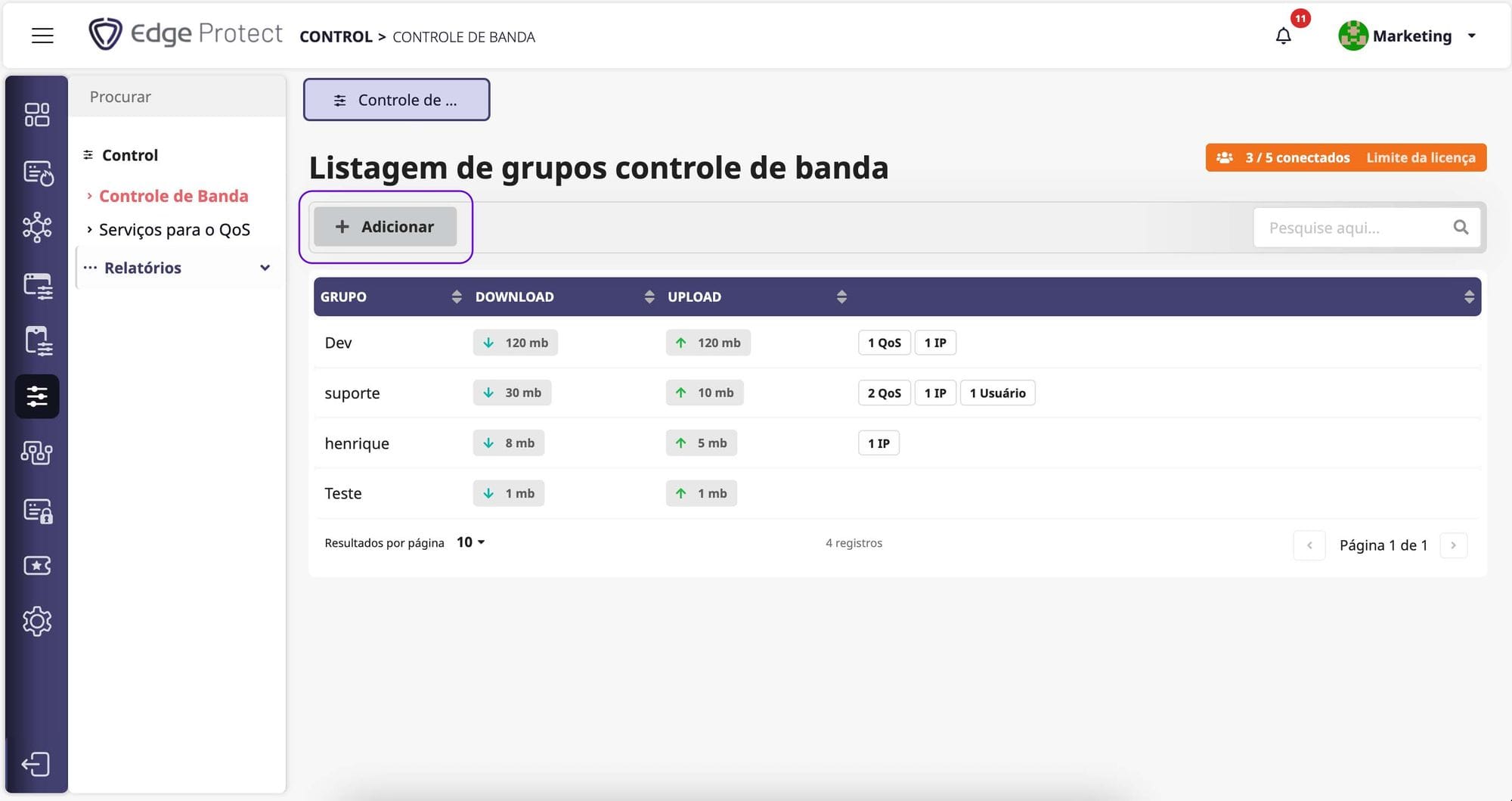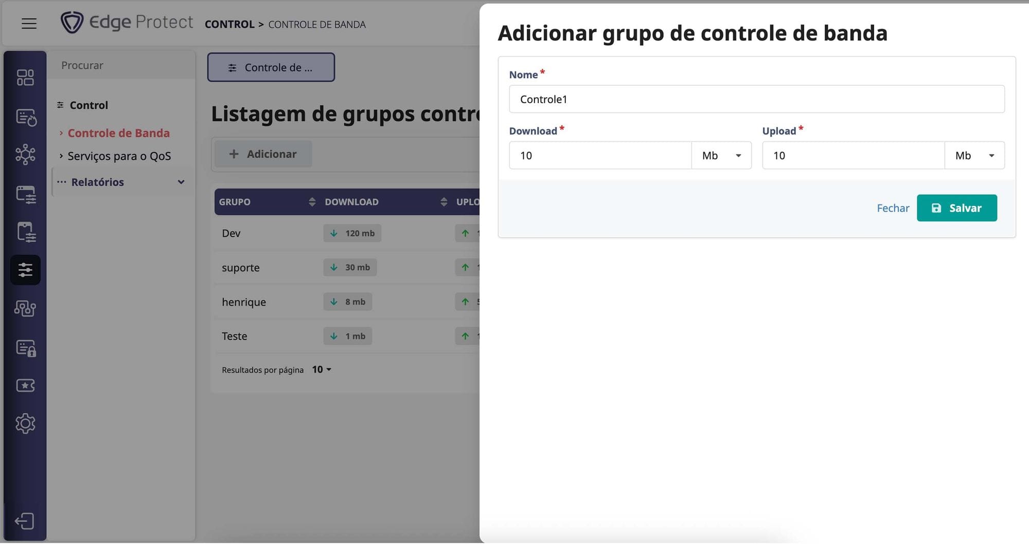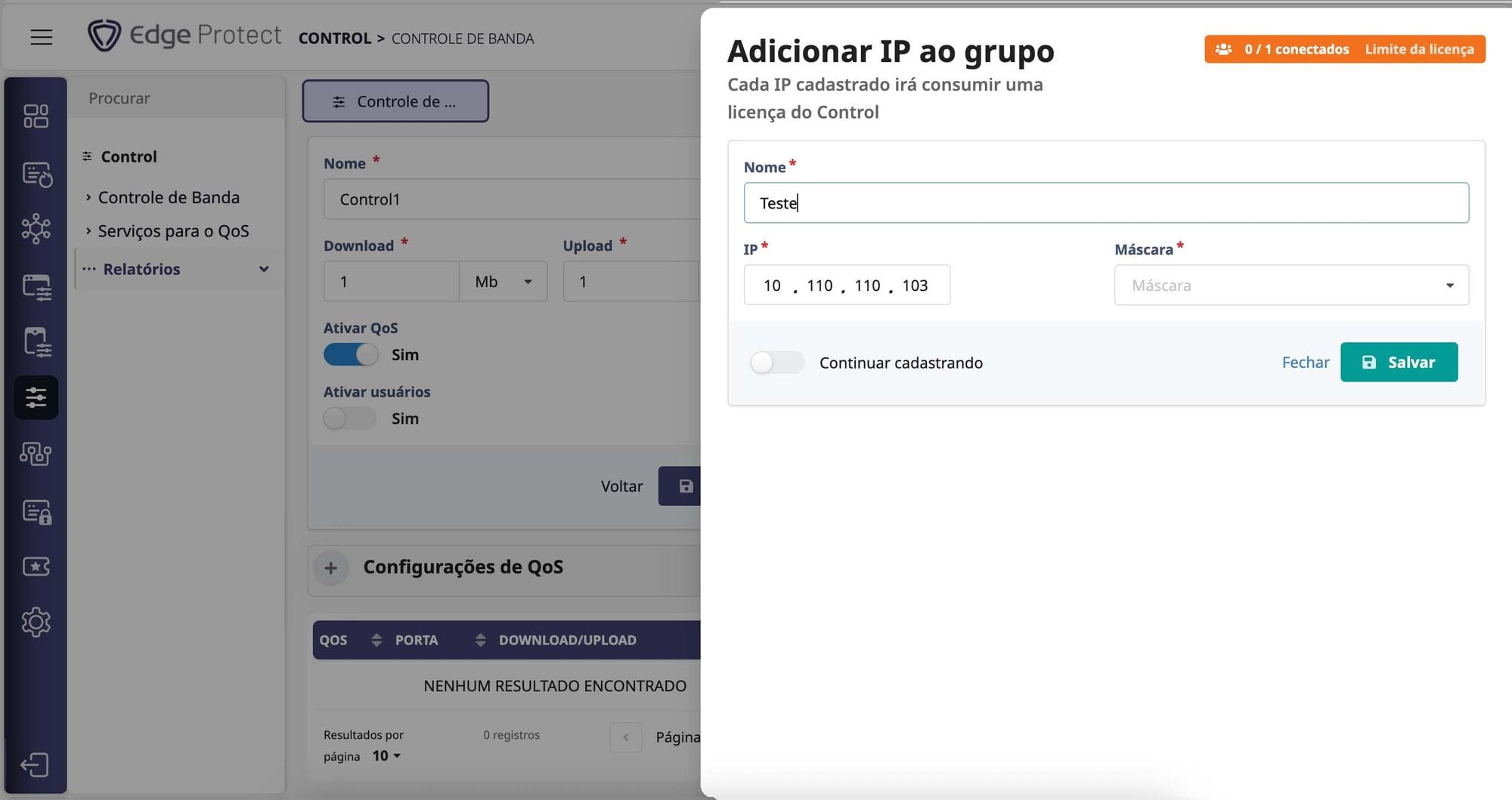 O módulo Control é uma parte essencial do Edge Protect, é um recurso responsável por gerenciar a largura de banda disponível na rede. Ele define e controla a quantidade de largura de banda disponível para grupos de usuários, usuários específicos ou redes inteiras.