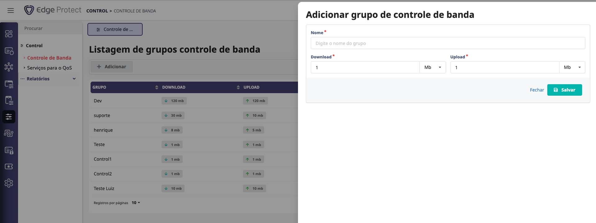 A ferramenta permite estabelecer limites máximos de download e upload por usuário, grupo ou rede, garantindo que a utilização seja distribuída de forma equilibrada.