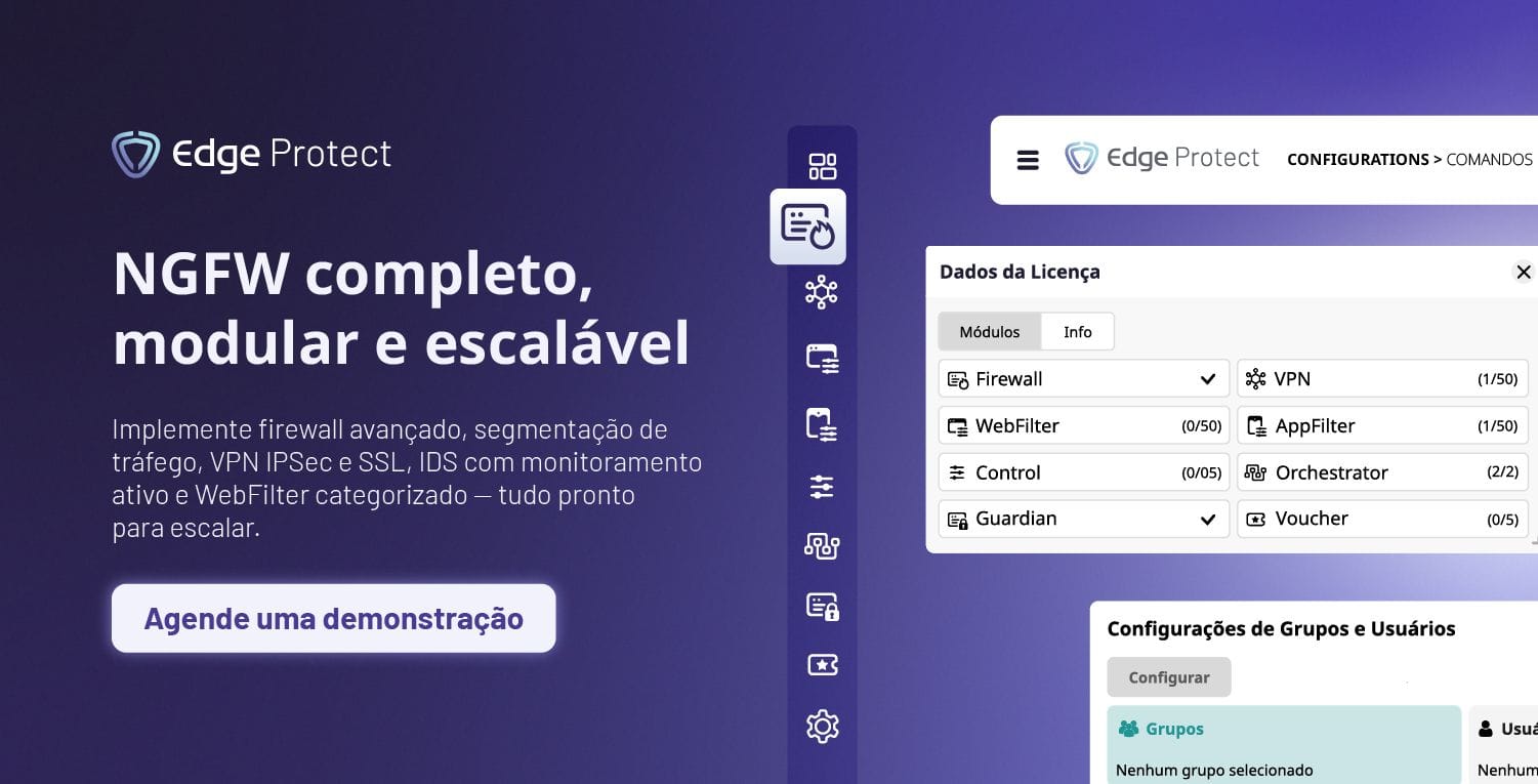 O módulo Voucher não atua isoladamente: ele faz parte de um ecossistema de segurança em camadas, que inclui Firewall, VPN, WebFilter e AppFilter. Essa integração garante ao MSP maior visibilidade, automação e facilidade na gestão multi-cliente.