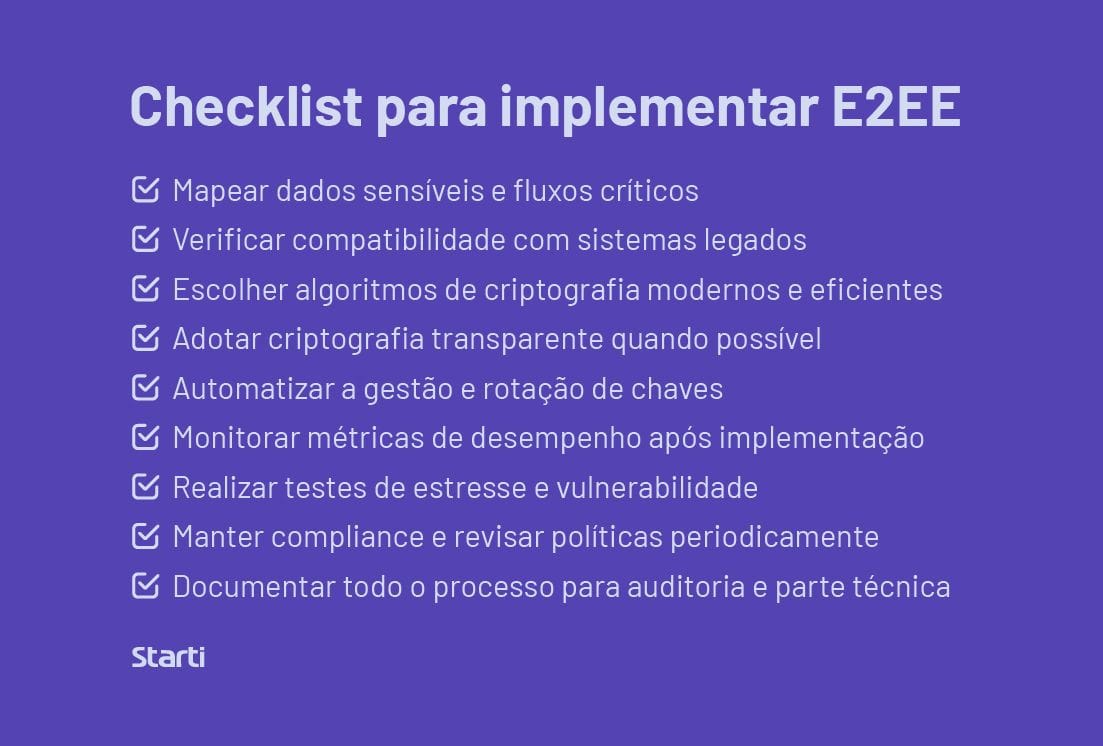 Checklist para implementar E2EE sem travar a operação do seu cliente