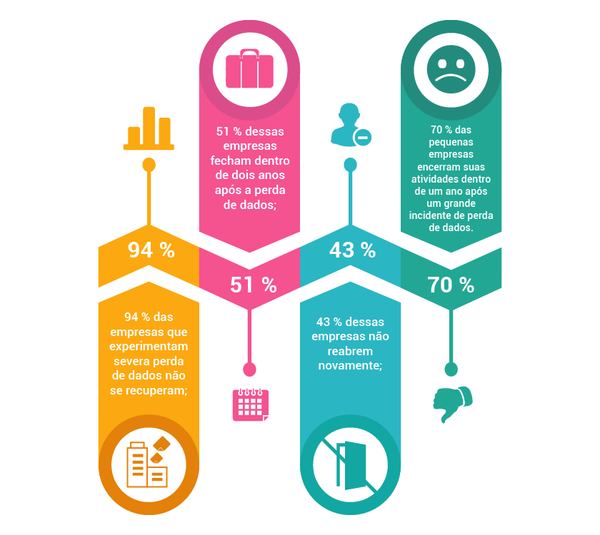 Dados como esses sinalizam que as empresas que não possuem uma estratégia de recuperação não conseguem continuar suas atividades após um desastre.