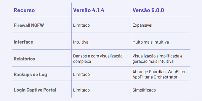 - Novos backups de logs: no Guardian, (apresentado na versão anterior) no WebFilter 2.0, no AppFilter e no Orchestrator.