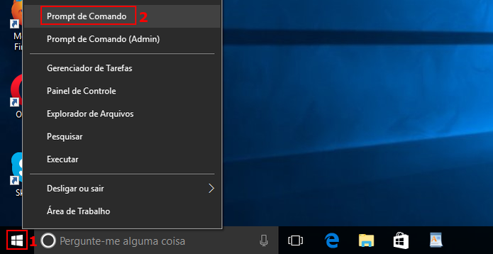 - Clique com o botão direito sobre o botão Iniciar ou Pressione as teclas "Windows" + "x". No menu que aparece, clique na opção “Prompt de Comando”.