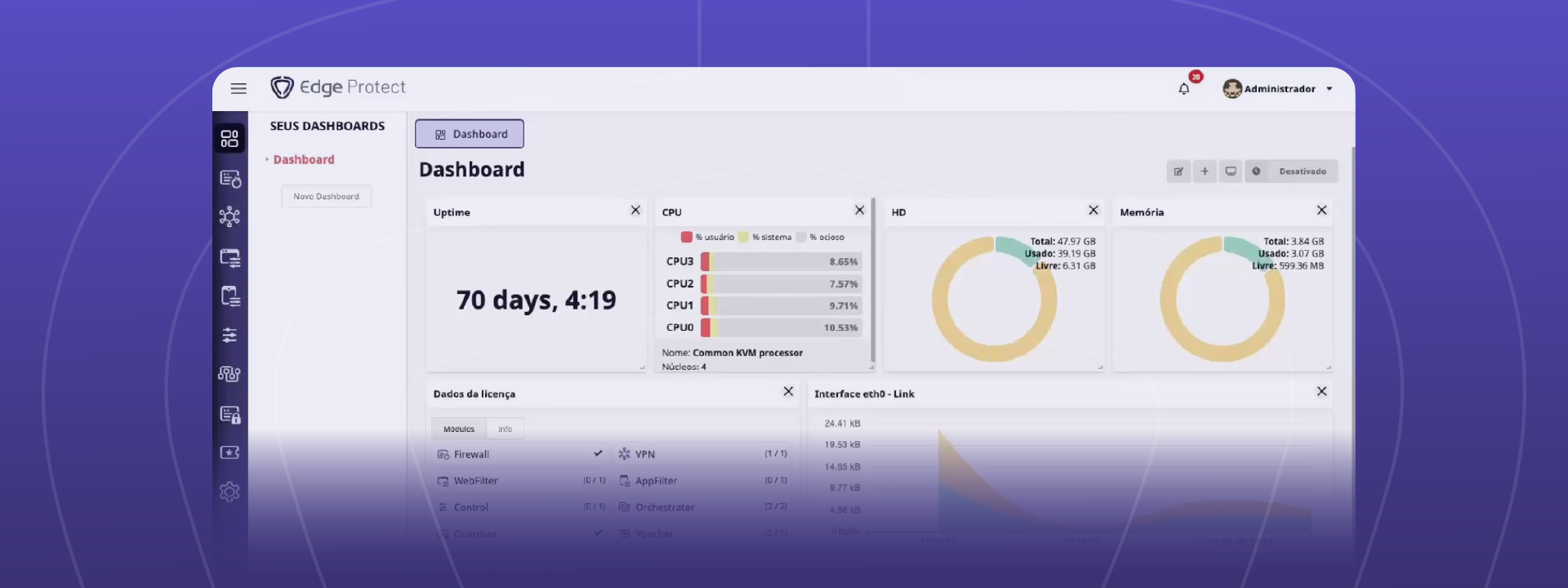A interface e a experiência do usuário são pontos essenciais para os profissionais que operam uma solução NFGW. Enquanto muitos firewalls do mercado possuem interfaces confusas, que exigem amplo conhecimento técnico, o Edge Protect se destaca pela simplicidade e praticidade em toda a sua interface.