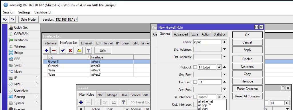 O RouterOS inclui um firewall embutido, oferecendo funcionalidades como filtragem de pacotes, NAT e aplicação de regras de segurança. Desde sua primeira versão, lançada em 1997, o RouterOS tem sido amplamente adotado por profissionais da área devido ao seu baixo custo e alta flexibilidade.