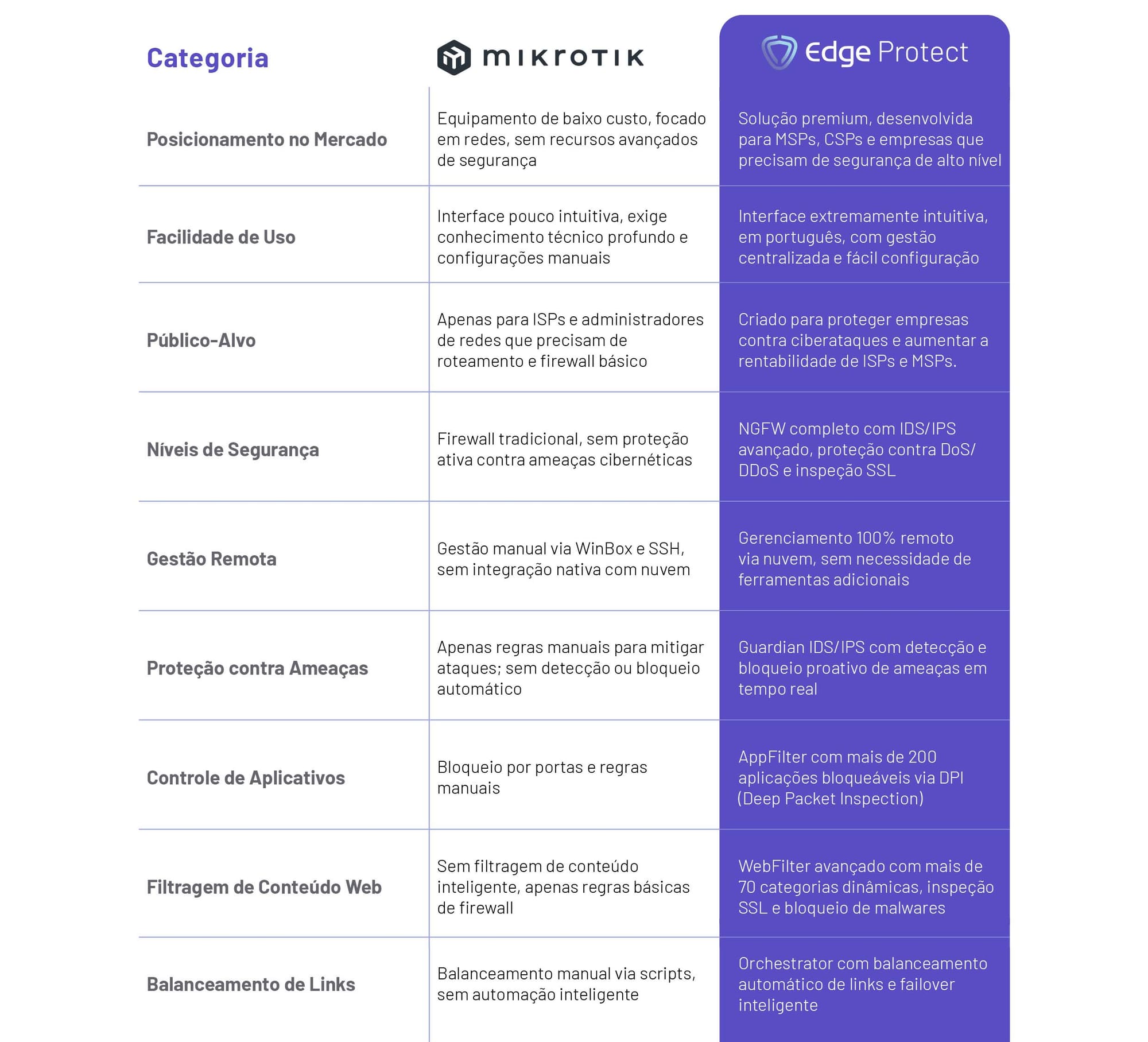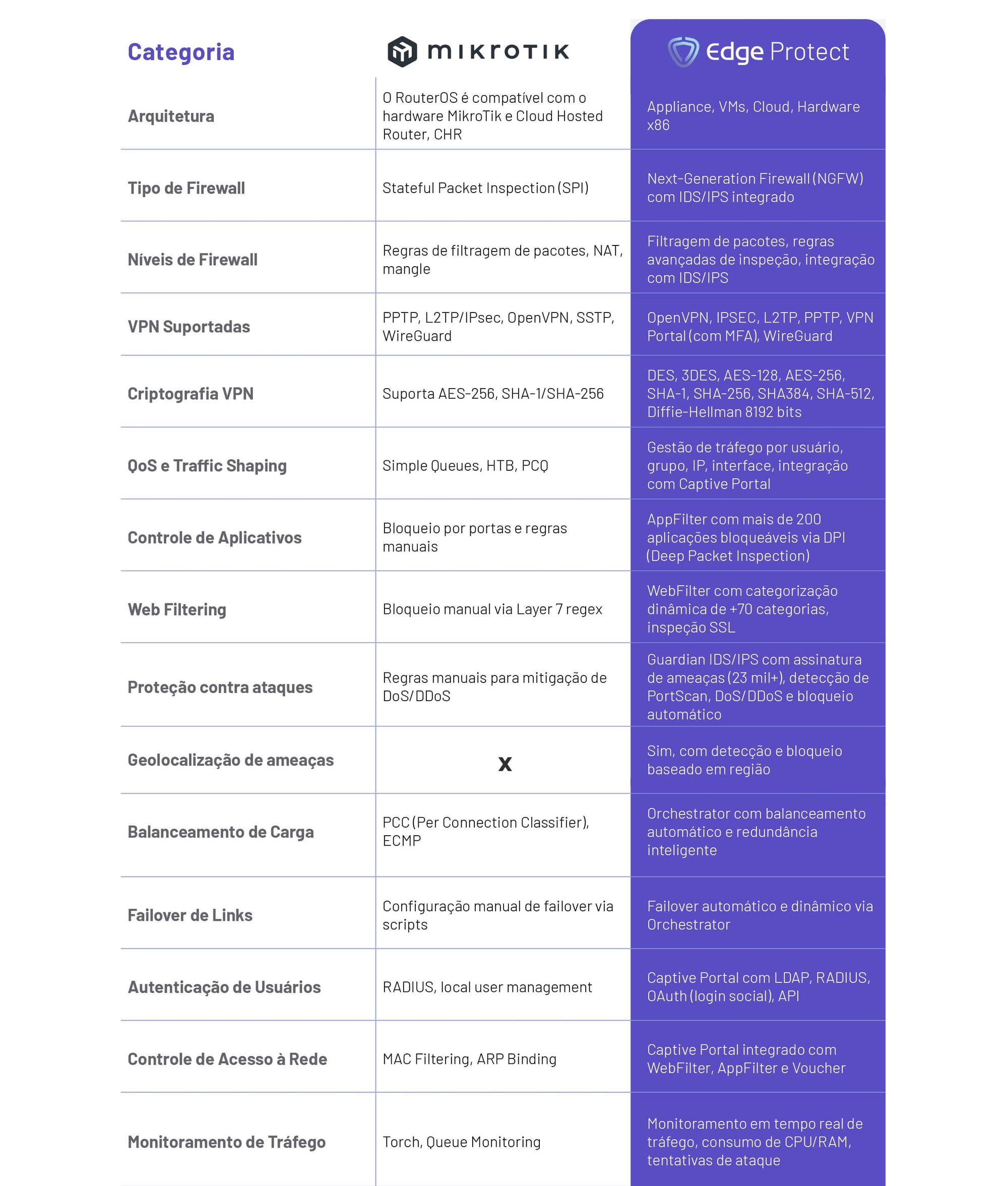 Comparação técnica entre o MikroTik e o Edge Protect