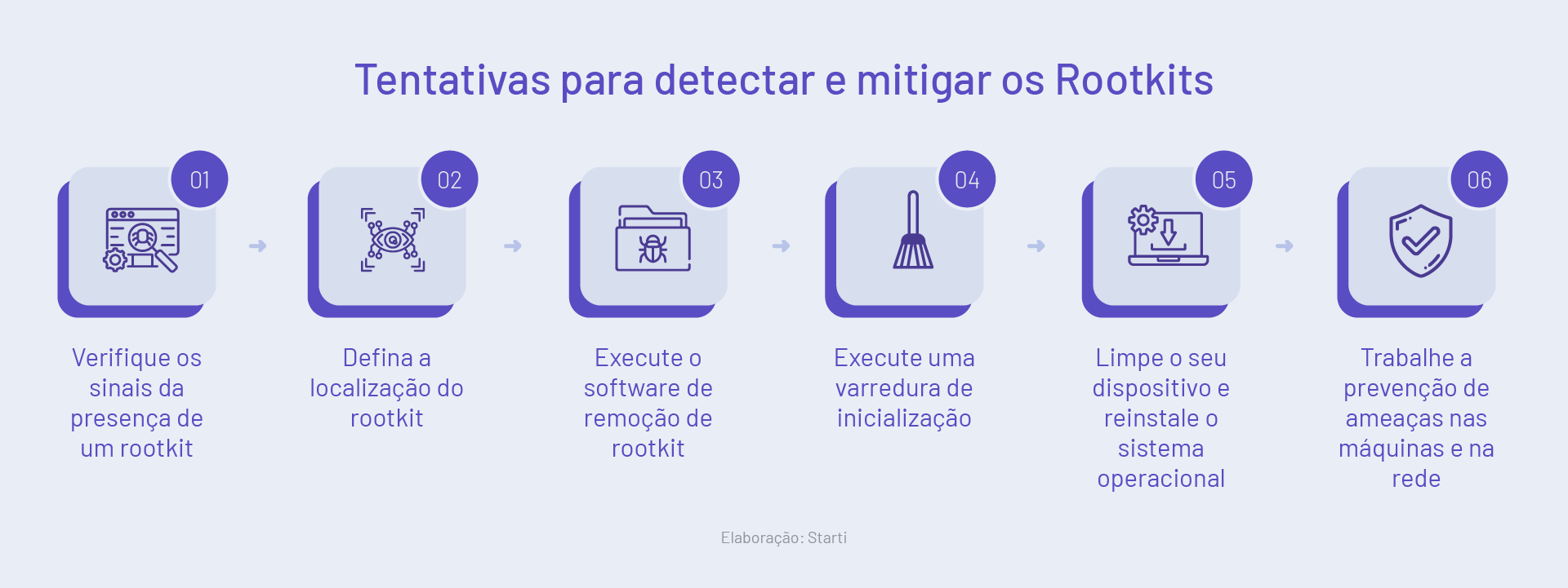 As estratégias de detecção e remoção dos rootkits podem alternar de sistema para sistema, mas existem passos semelhantes. A seguir, apresento alguns passos que podem nortear a tática contra essa ameaça.