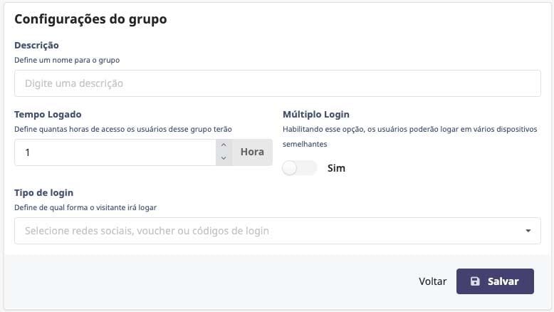 - Múltiplo login: habilite se desejar permitir múltiplos logins com o mesmo voucher.