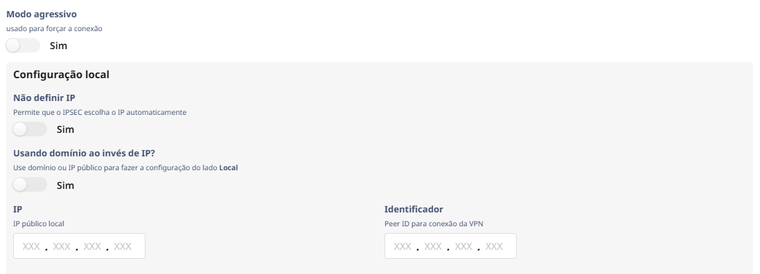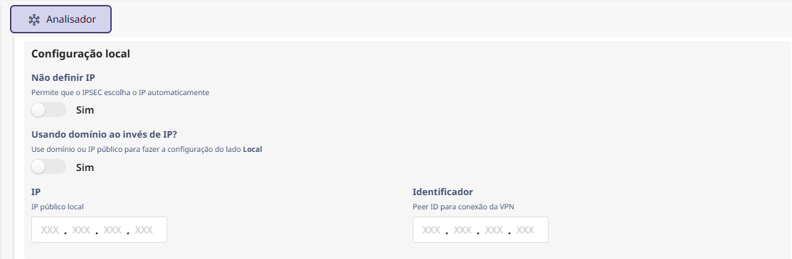 Insira manualmente o IP público da interface que fechará a comunicação com a outra borda, ou o IP que está configurado na interface que receberá a IPsec.
