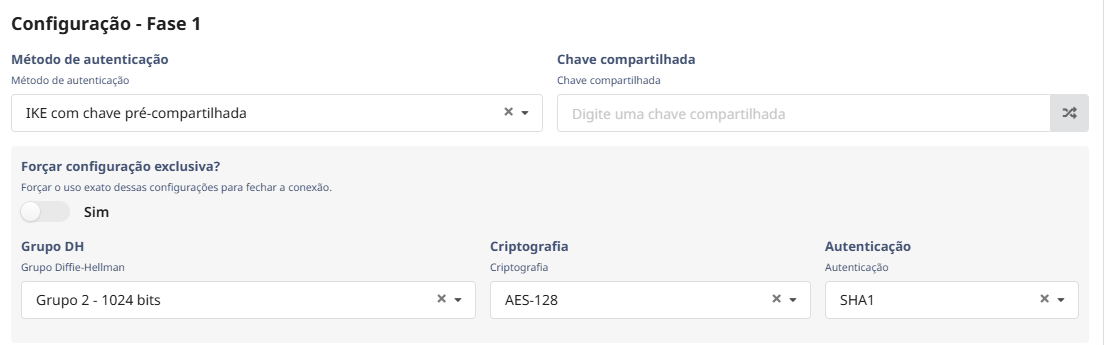 Importante: caso a fase 2 seja maior que a fase 1 a IPsec pode apresentar instabilidade.