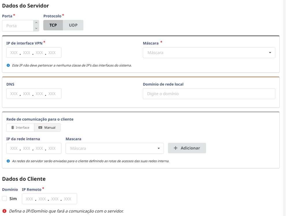- Rede de túnel (ex.: 10.10.100.1/24)